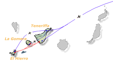 Um stressfrei die insularen Flüge nutzen zu können, sollten Sie vom Heimatflughafen nicht später als 13.00 Uhr auf Teneriffa ankommen, für den Rückflug besser erst nach 13.00 Uhr abfliegen. Bei guter Planung ist es möglich, El Hierro an einem Tag zu erreichen. Bitte checken Sie eine Stunde vor Abflug am Schalter Ihrer Fluglinie in Los Rodeos ein.