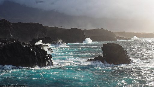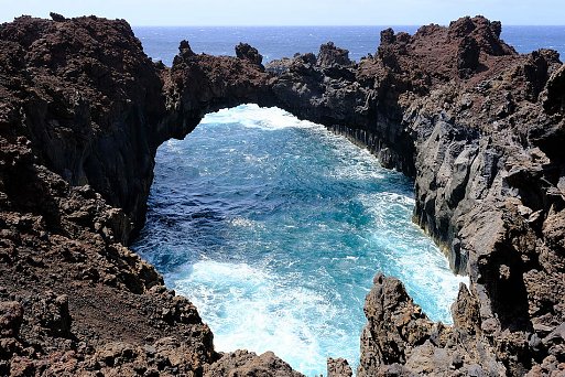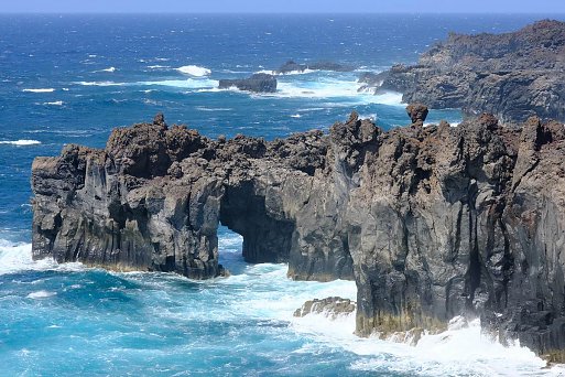 Wenn sich hohe Wellen auf schwarzen Lavafelsen brechen, ist das sicher ein beeindruckendes Naturschauspiel, aber man sollte Abstand halten, beim Schwimmen mit Strömung rechnen und nicht bei unruhiger See auf Felsbögen herumklettern.
