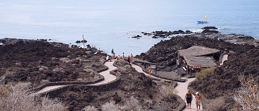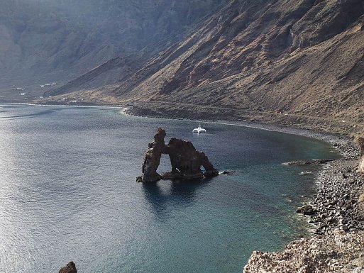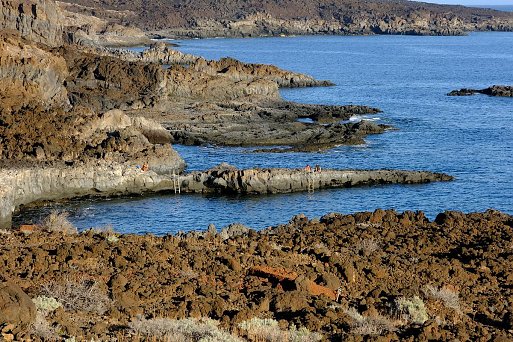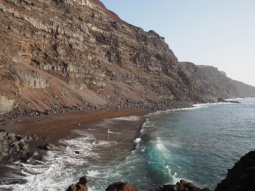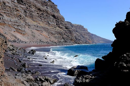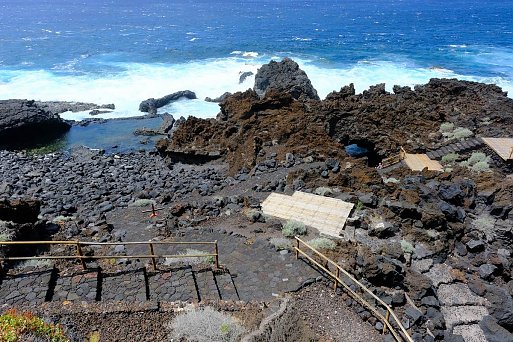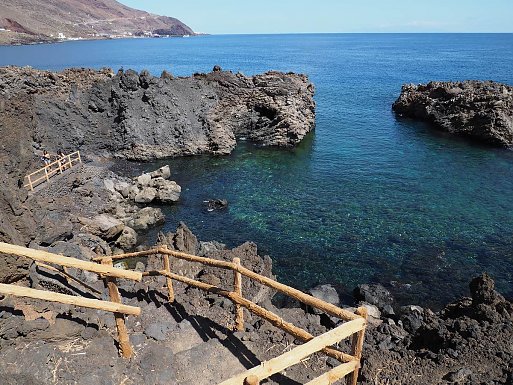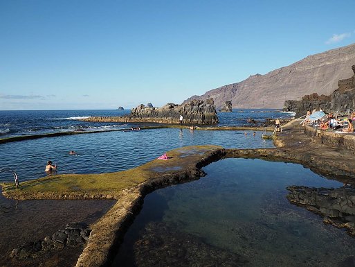 An der über 110 km langen Küste El Hierros wechseln sich wild anmutende Lavalandschaften, mit steilen Klippen, langen Steinstränden, Buchten und vereinzelten kleinen Sandstränden ab. Erst in den letzten 20 Jahren wurden mit Natursteinen und Mäuerchen sehr schöne Badestellen angelegt, an denen man per Leiter, Steg oder Treppe sicher ins Wasser gelangen kann. Hier geben sich die Insulaner gemeinsam mit den Feriengästen Badefreuden hin und schwimmen teils weite Strecken entlang der Küste.