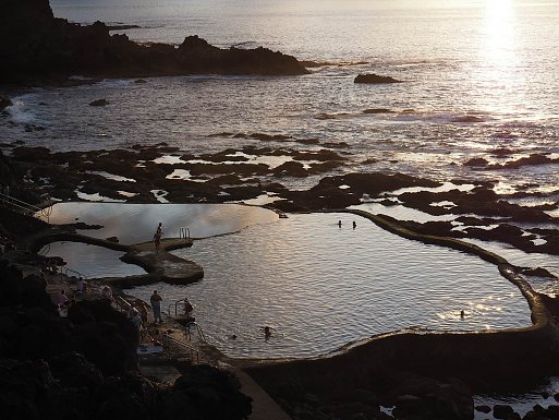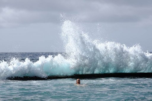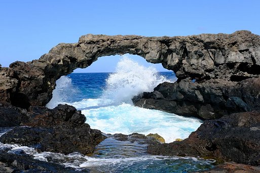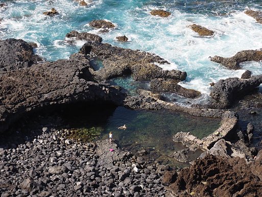Wenn sich hohe Wellen auf schwarzen Lavafelsen brechen, ist das sicher ein beeindruckendes Naturschauspiel, aber man sollte Abstand halten, beim Schwimmen mit Strömung rechnen und nicht bei unruhiger See auf Felsbögen herumklettern.