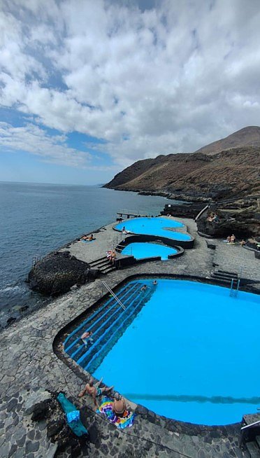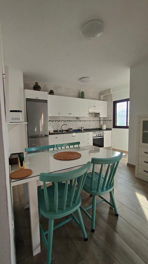 Die geräumige, helle, ruhig gelegene Ferienwohnung in Meernähe ist liebevoll und stilvoll eingerichtet. Der Blick von der großen Dachterrasse über die leuchtend blauen Pools auf den Atlantik mit der Bergkette im Hintergrund ist umwerfend schön.
