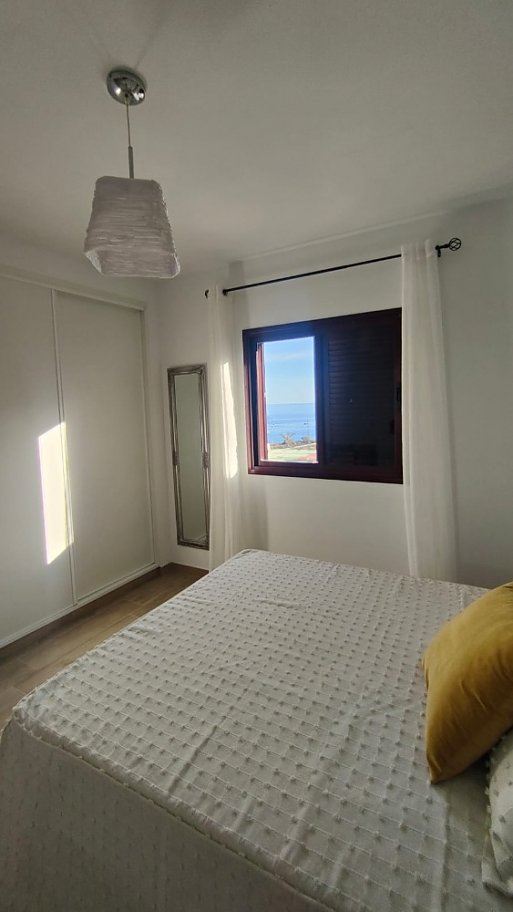 Im größeren Schlafzimmer steht ein Doppelbett, die hellen Wandschränke bieten viel Stauraum für Ihr Gepäck und der Blick aus dem Fenster aufs Meer ist spektakulär.