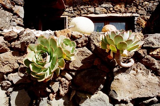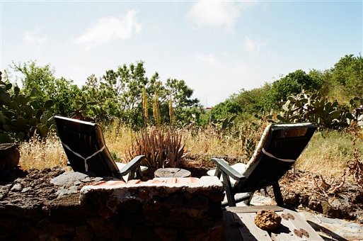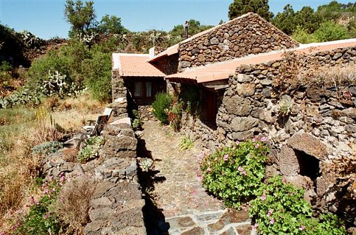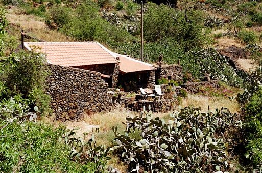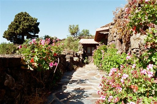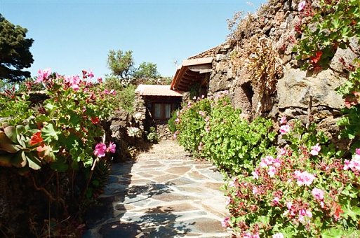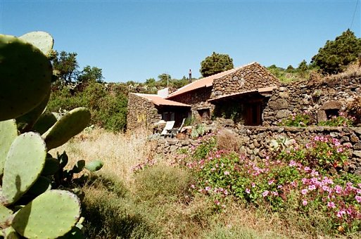 La Jarita ist ein ganz besonderes Haus mit fast mittelalterlich anmutendem Flair und nichts erinnert hier an die Hektik des modernen Alltags. Es ist von Wiesen mit alten Bäumen und Steinmauern umgeben, am Berghang stehen Feigenkakteen und Büsche, vereinzelt auch Pinienbäume. Vom Liegestuhl oder wenn man am Gartentisch sitzt, kann man den Blick über den Ort El Pinar, aufs Meer und den Duft der Blumen genießen.