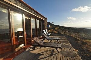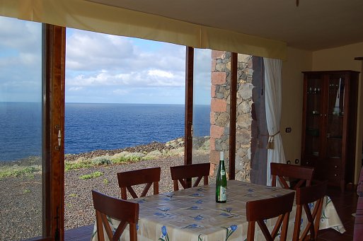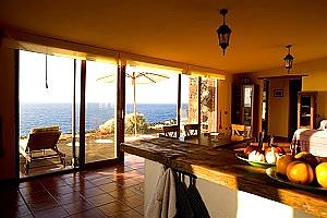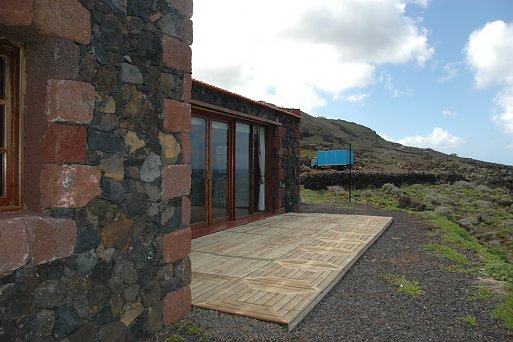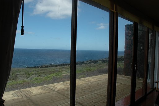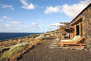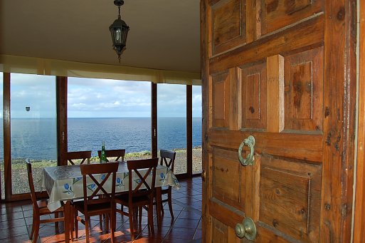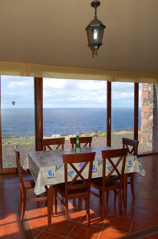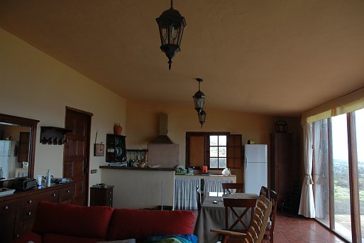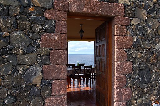 In dem von aussen rustikal wirkenden Haus, überraschen der große, helle Wohnraum mit seinen stilvollen Möbeln und der 8 m langen Fensterfront, durch die der atemberaubend schöne Blick über das Meer bis nach La Palma besticht.