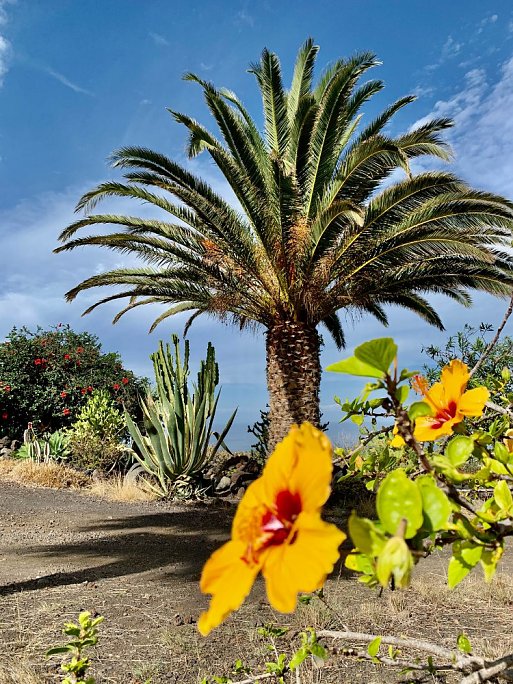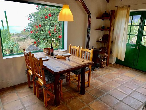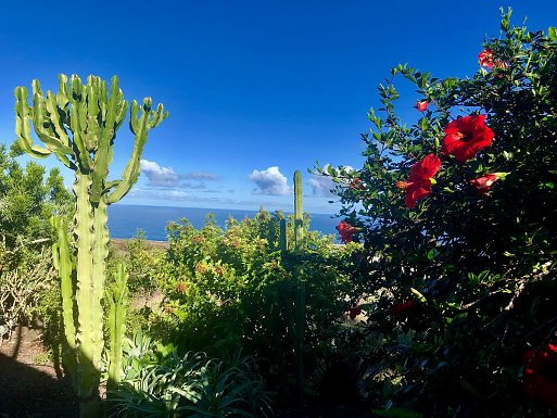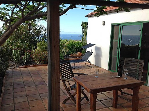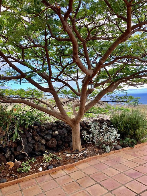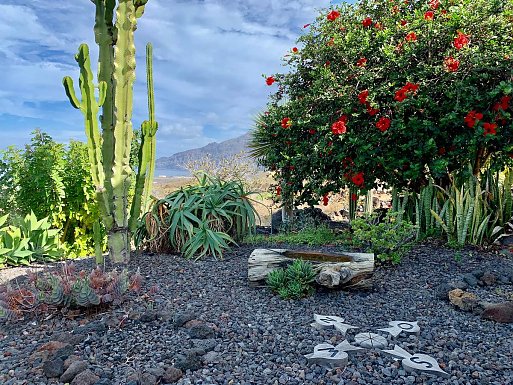 Casa Pescador erreicht man über eine kleine Piste, die von der Nebenstraße zwischen Tigaday und der Küstenstraße abgeht. Auf der ruhig gelegenen Finca blühen Oleander, Hibiscus und verschiedene andere Pflanzen im Wechsel der Jahreszeiten und ein Flamboyan spendet Schatten auf der nicht einsehbaren Terrasse. Der Blick über das Meer und zur anderen Seite auf das Golftal und die Berge ist wunderschön.