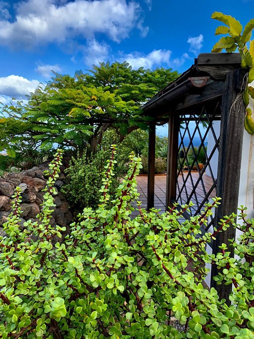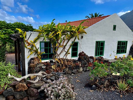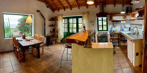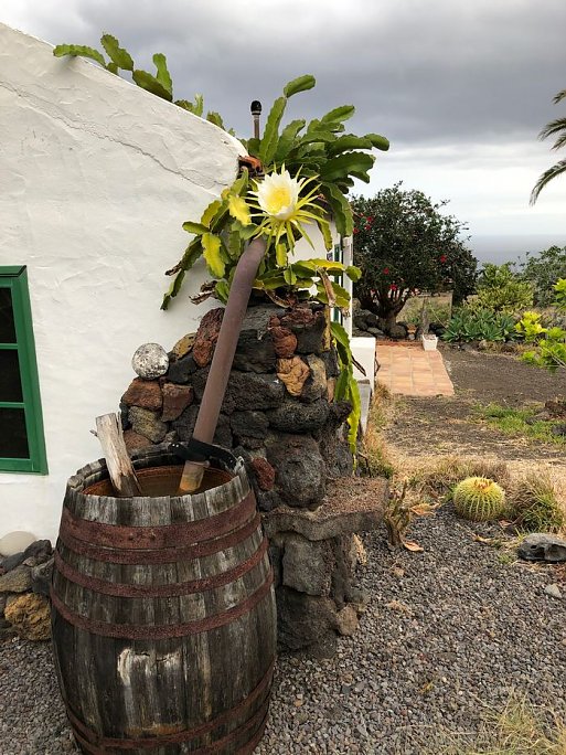 Sehr ruhig gelegenes, helles Haus mit blühendem Garten zwischen Tigaday und dem Atlantik im Golftal mit großer Terrasse. Einrichtung mit wunderschönen Holzarbeiten.