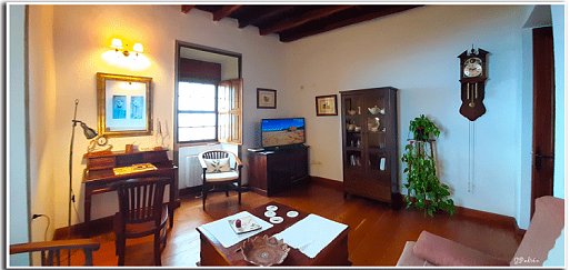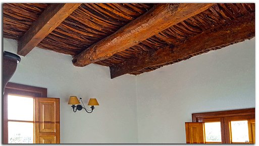 Die geschmackvollen, antiken Möbel und die aus massiven Holzbalken und Sabina-Zweigen gearbeiteten Zimmerdecken unterstreichen den Charme vergangener Tage und tragen zum gemütlichen Ambiente des Hauses bei.