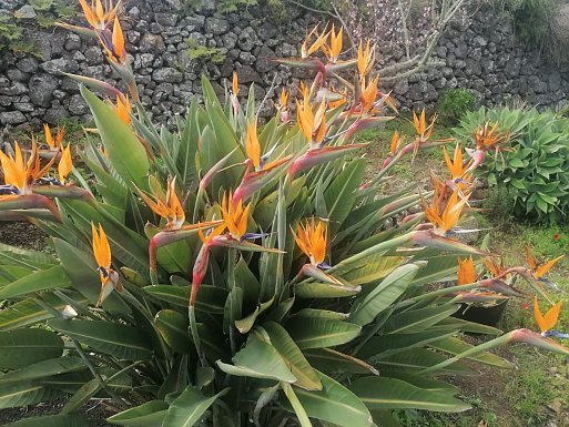 Neben dem Parkplatz vor dem Haus liegt zur einen Seite ein Kakteengarten und zur anderen Seite blühen Strelizien, alte Rosen, Blumen und Sträucher.